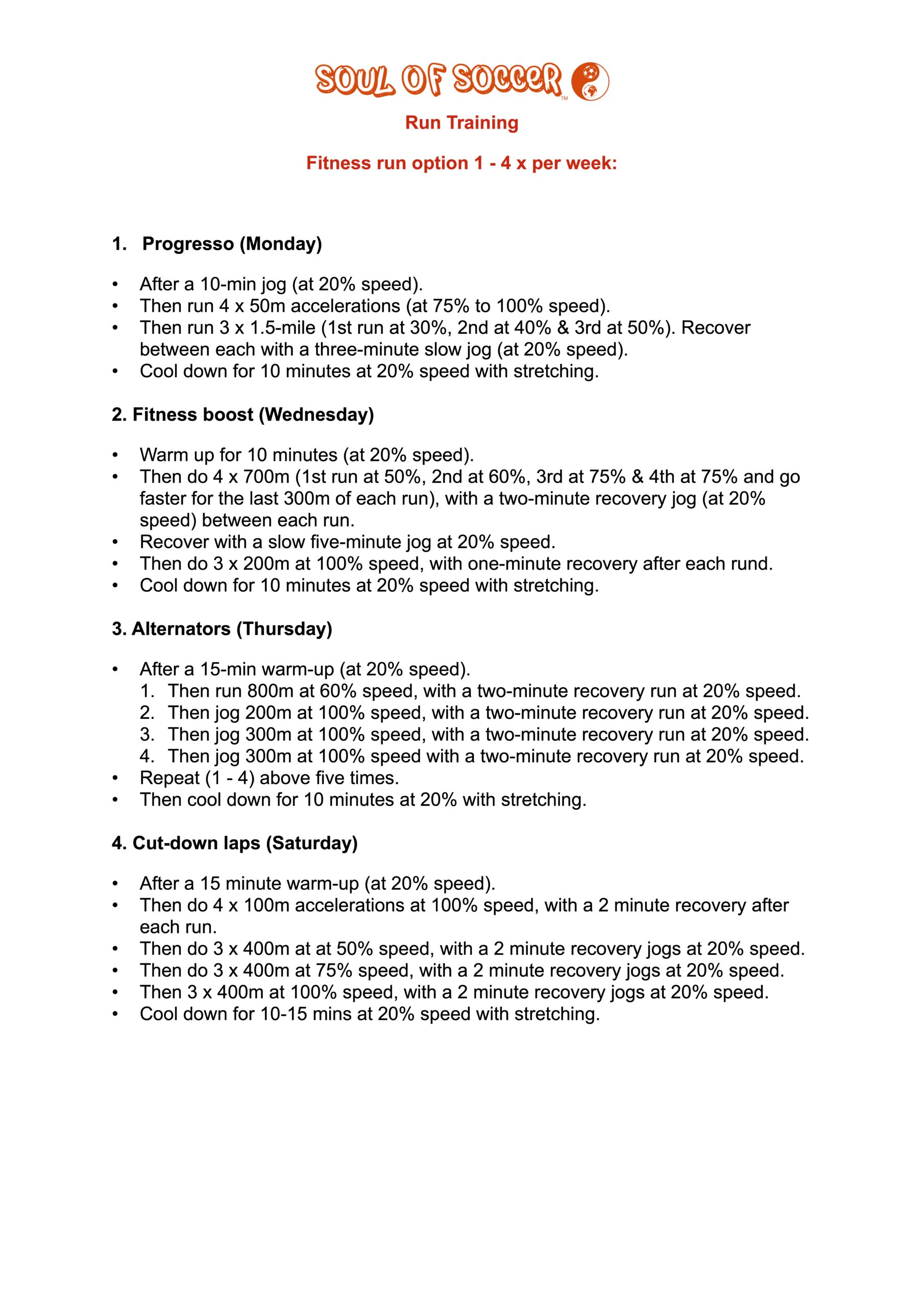 Fitness run option 1 – 4 x per week:
